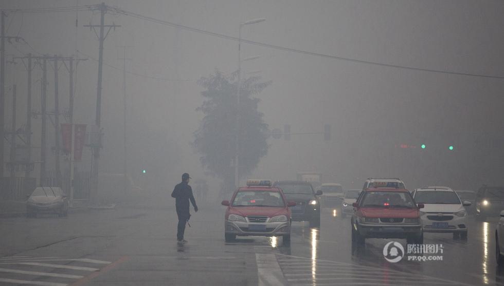 當(dāng)日一些社交媒體圈均被霧霾所“刷屏”。一位網(wǎng)友發(fā)文圖顯示,一場婚禮在婚車迎親時(shí),跟拍車?yán)锏呐臄z者只能近距離攝像,后面的婚車都已陷入霧霾里失去了“蹤影”。