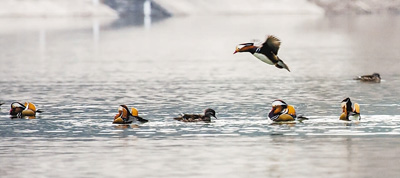 近日,在湖北省京山縣一處濕地公園悠然嬉戲的中華秋沙鴨,特別引人關注。
